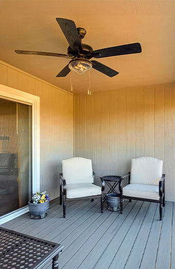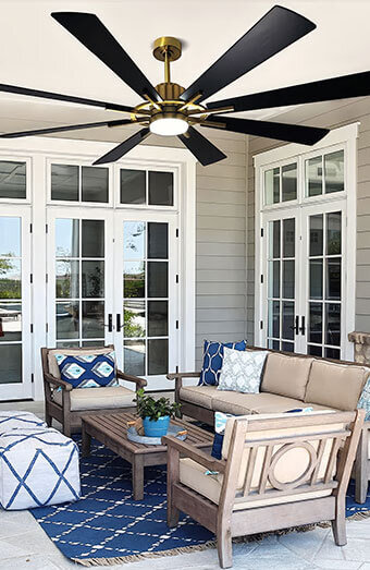 Installation of IP-rated weatherproof ceiling fans for outdoor areas such as decks, patios, and verandas, built to withstand Queensland’s climate.